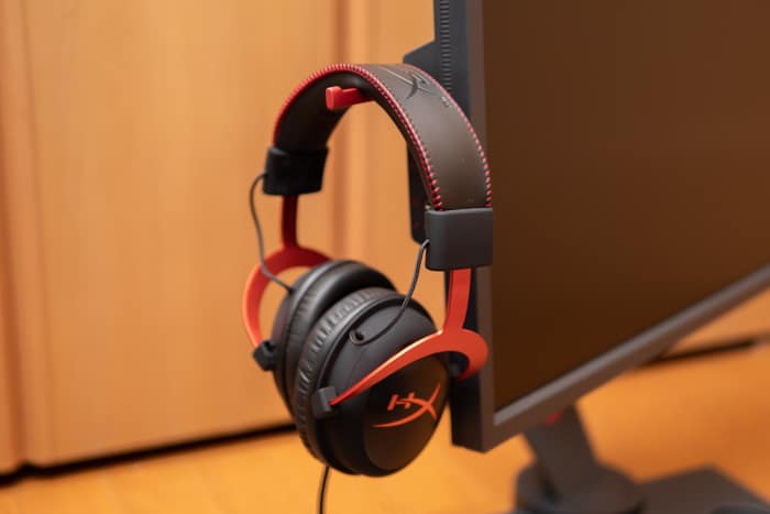 ▲モニター左側には飛び出し式のヘッドホンハンガーもありますね。